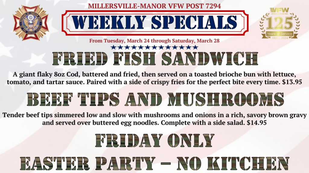 -REMINDER: PREORDER IN THE CANTEEN TO RESERVE YOUR DINNER! SEE THE BARTENDER FOR SIGN-UPS! ENTREES WILL BE AVAILABLE BOTH FRIDAY FEB 13 AND SATURDAY FEB 14!